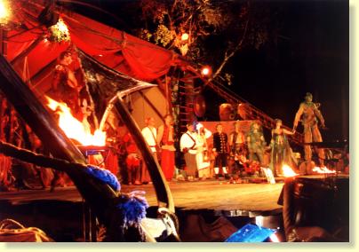 Mystische Theater, haushohe Flammenfontänen, vulminante Bühnenfeuerwerke mit unzähligen Spezialeffekten, aberberwitzige Kommödianten in einer aufwendig, archaischen Kulisse.